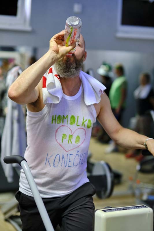 Cílem akce bylo vyšlapat na H.E.A.T. strojích 120 000 kroků, za které půjde 40 000 Kč pro Konečkovy. Nebyli bychom to ale my, abychom se nehecli a nevytřískali ze sebe ještě o kus víc. A tak jsme nakonec nachodili kroků 185 000 a pro rodinu, kterou před čtvrt rokem připravilo tornádu o domov, půjde díky akci 84 675 Kč.